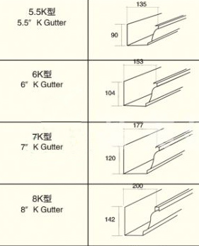 | Sizes | e1 | d1 | d2 | g1 | Gutter Cross Section |